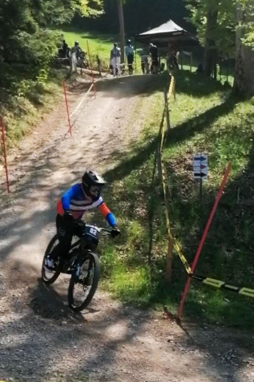Tags darauf stand der erste Teil der ÖM am Programm. Wie schon am Vortag war das Who is Who der männlichen Szene anwesend und so konnte man das Können von Weltcupteilnehmern und dem Europameister Andreas Kolb bestaunen. Johannes nutzte die Gelegenheit weitere Erfahrungen zu sammeln und steigerte sich von Lauf zu Lauf und lotete die Grenzen aus. Wie üblich fährt am ersten Tag eines großen Bewerbes jede/r Teilnehmer*in einen sog. SEEDING RUN, mit dem die Setzliste für das Finale festgelegt wird. Johannes bekam von mir den Auftrag kontrolliert und mit Reserve zu fahren, was er gut machte und mit einem positiven Gefühl für den kommenden Tag ausgestattet war.
