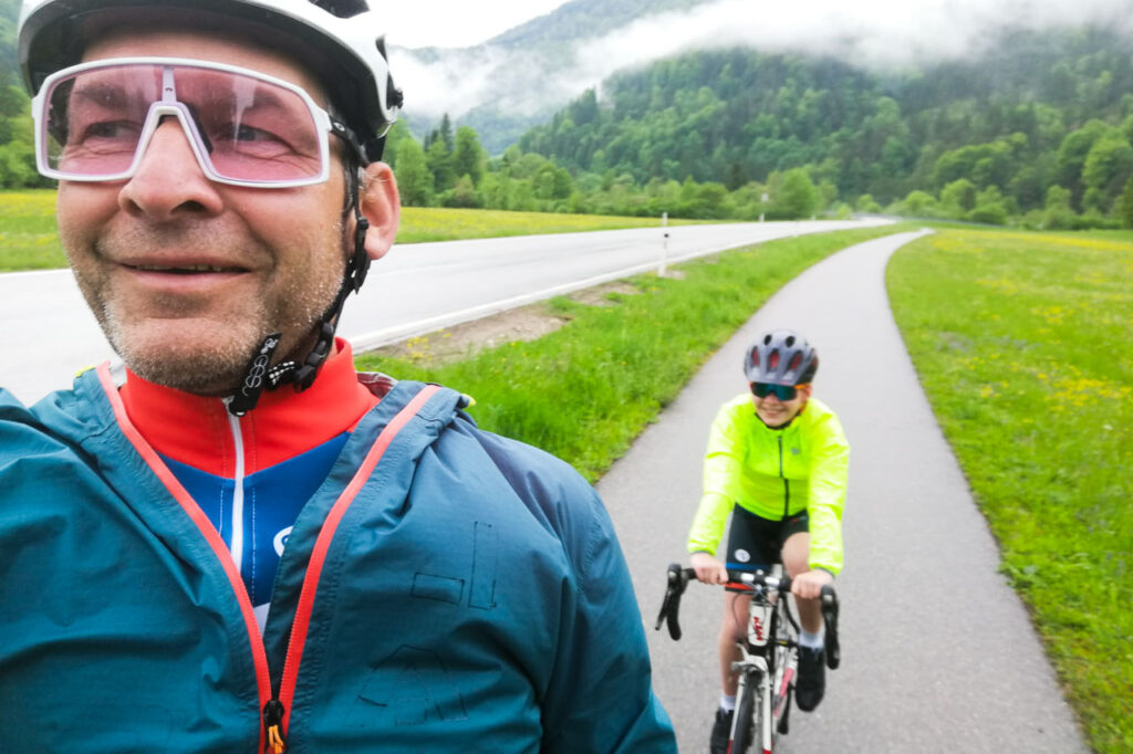 Die Nacht zu den ÖM war mit Regenschauern durchsetzt und die DH-Anlage in Hollenstein veränderte, zur Freude von Johannes, ihren Charakter. Es war wieder sehr rutschig und viele Passagen mussten mit weniger Tempo, aber mehr Gefühl gefahren werden. Klara und ich als Support vertrieben uns derweilen im Tal die Zeit am schönen unbefahrenen Ybbstalradweg, um mittags wieder zum Bewerb am Berg zu kommen.